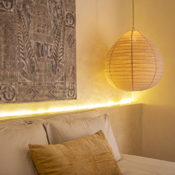 Drawing inspiration from Mediterranean and Mexican aesthetics, the serene beige and sandy tones, natural lime wash walls, and minimalistic decor create an organic, sophisticated ambience. World-travel-inspired furnishings and natural materials enhance the space's functionality and appeal, resulting in boosted bookings and making Villa Sol a best-selling property—a true showcase of thoughtful design.
